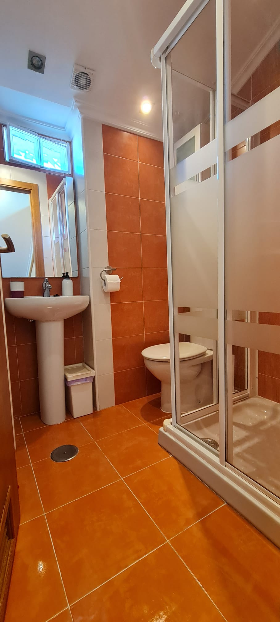 Cocina completamente equipada y baño con plato de ducha.