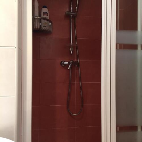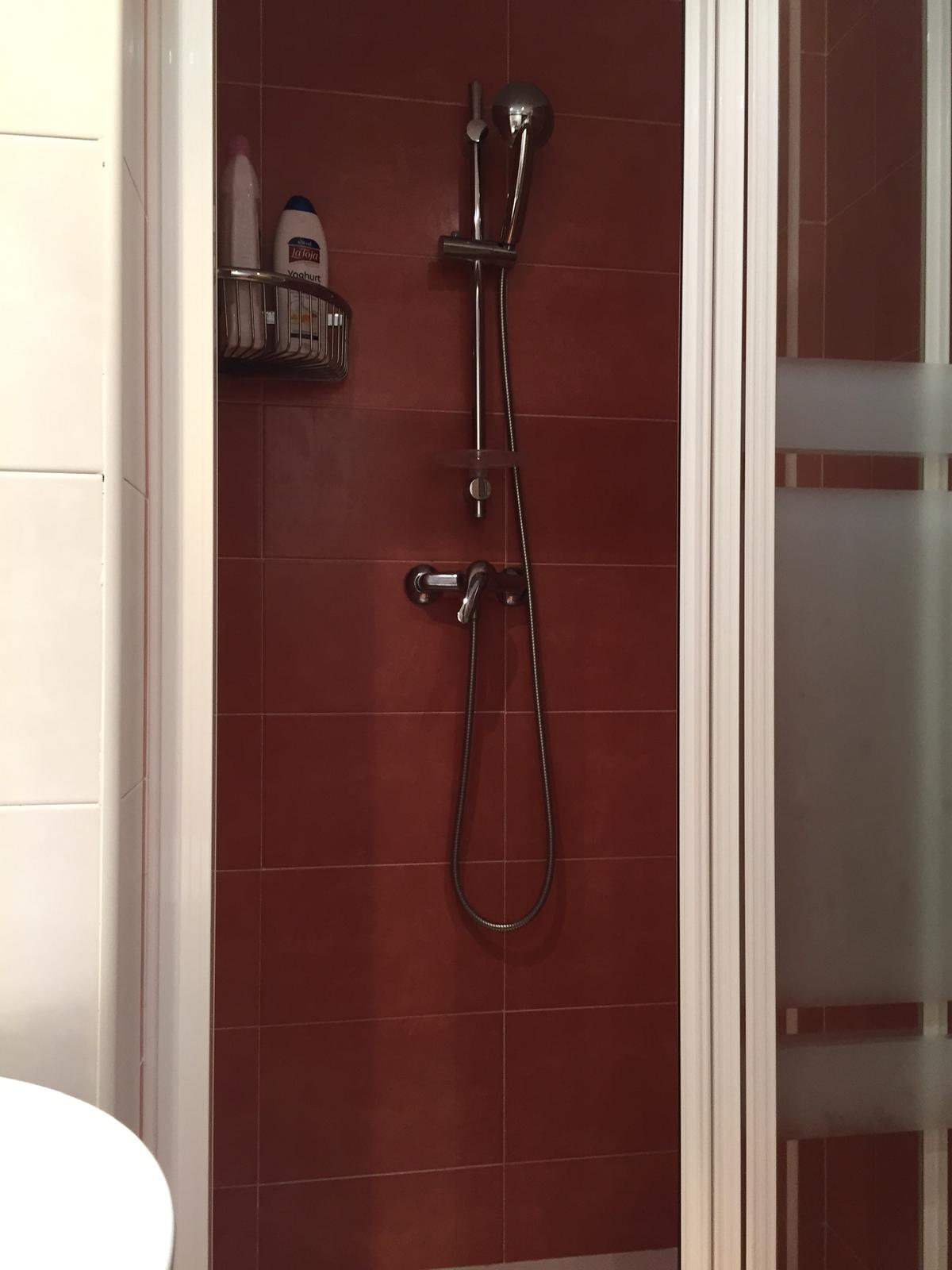 Cocina completamente equipada y baño con plato de ducha.